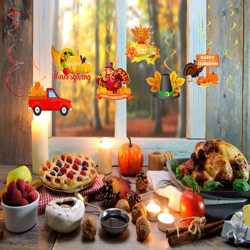 - Fall Thanksgiving Decorations: Set includes 36 pieces of Thanksgiving hanging decorations. Autumn Thanksgiving swirls. Thanksgiving party decorations, Thanksgiving hanging decorations.