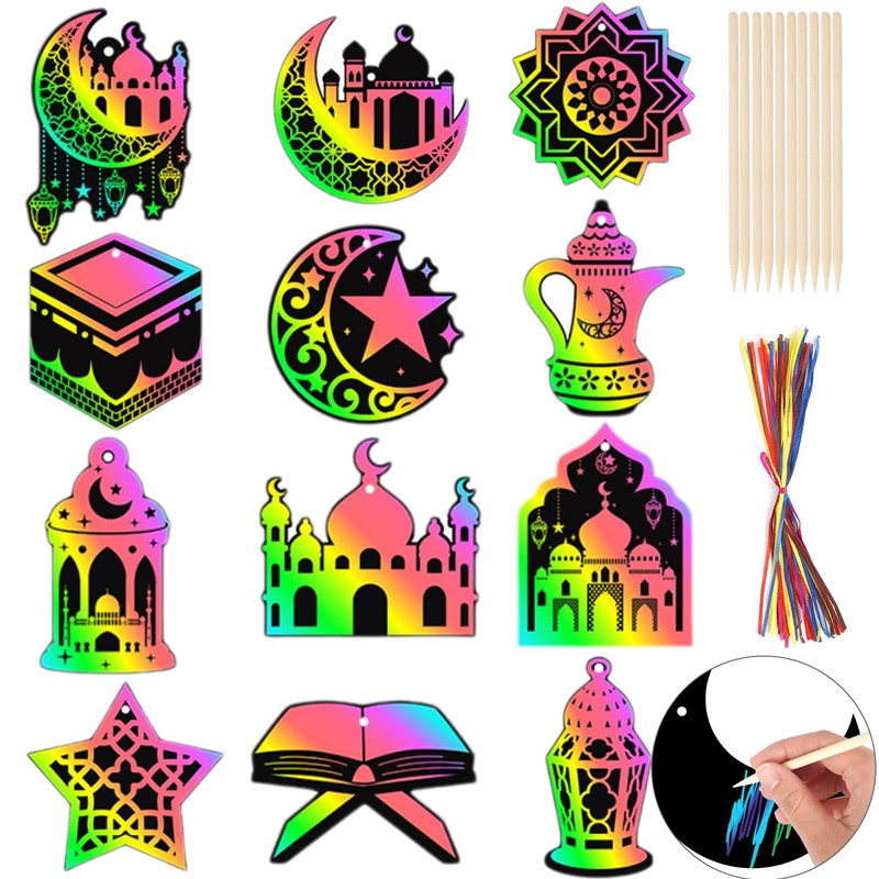 Qpout 48 Pack Ramadan Scratch Art Ramadan Scratch Paper Art Eid Mubarak Magic Color Scratch Off Cards Gifts Ramadan Themed Party Favors School Home Activity Art Project