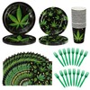 Qpout Weed Themed Party Decorations Weed Birthday Tableware Supplies Include Weed Leaves 7''and 9'' Plate Party Disposable Napkins Cups Fork for 420 Decor Serve 16 Guests