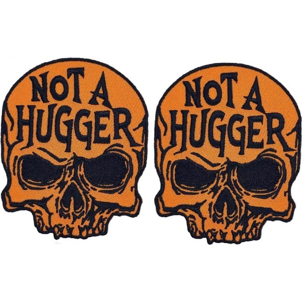 QPS NOT A HUGGER Skull Embroidered Patch  - 2PC  iron on sew on 3" x 3.5"