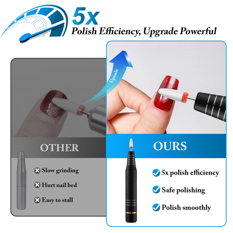 - Versatile and Efficient: The QPVZX electric nail drill set comes with 12 nail drill bits and 30 sanding belts for a variety of nail tasks such as shaping, polishing, sanding, and removing cuticles and calluses. You can use this professional-grade portable nail drill to complete your nail salon.