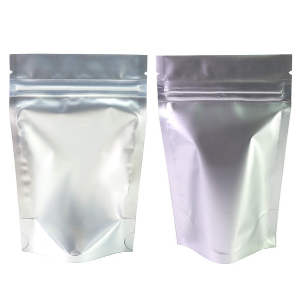 QQ Studio 100 Single-Sided Matte Metallized Foil Resealable QuickQlick Packaging Bags with Stand-Up Bottom Gusset for Dry Rice Products (Opaque & Silver, Outer Size: 5.5x7.9")