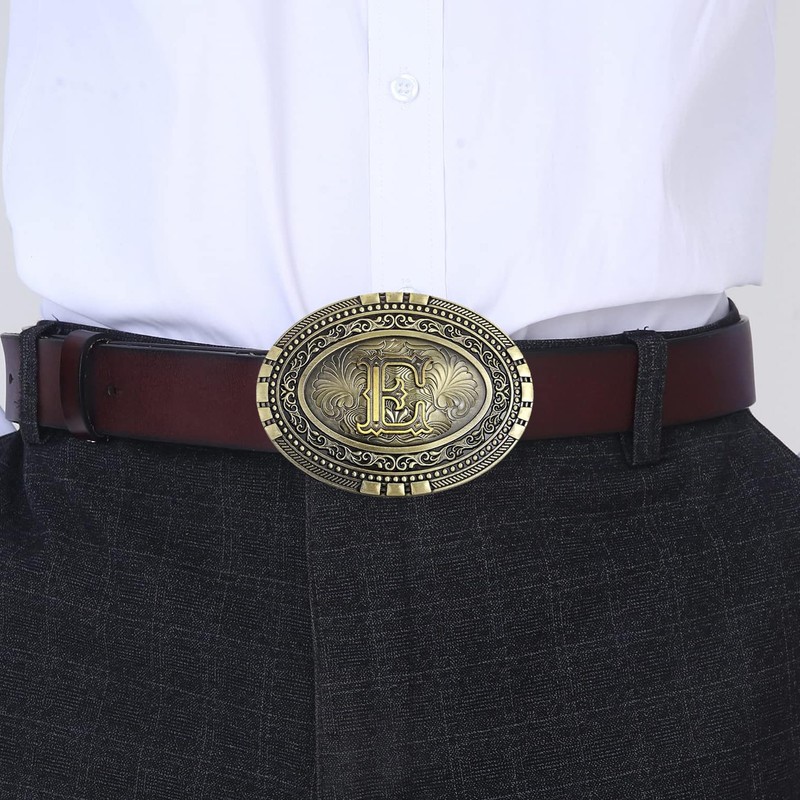 QQA Western cowboy belt buckle initials ABCDEF TO Z Men's novelty upgraded belt accessories (5646E)