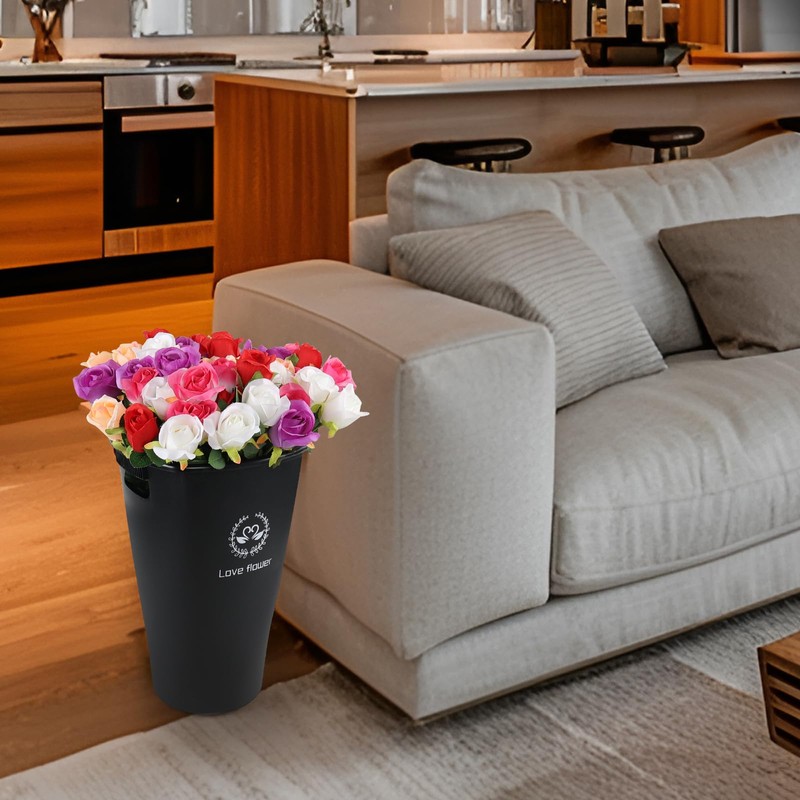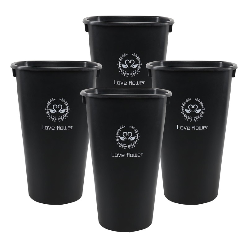 Qqbine 4-Pack Tall Flower Plant Buckets with Handles, Wake Up Flower Display Buckets, Flower Display Plastic Buckets, Black