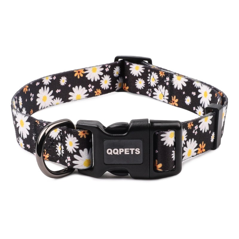 QQPETS Adjustable Soft Dog Collar: Print Flower Pink Multicolor Cute Patterns for XS Small Medium Large Pet Girl Boy Puppy Walking Running Training (S, White Daisy)