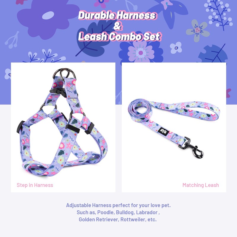 - Width & Length: The width of Leash and harness is the same, XS-3/5”, S-3/5”, M-4/5”, L-1” . The length of the leash is the same, It's a good length at 5 feet, designed for pet parents to enjoy comfortable walks with their dogs and fit for small, medium and large dogs.