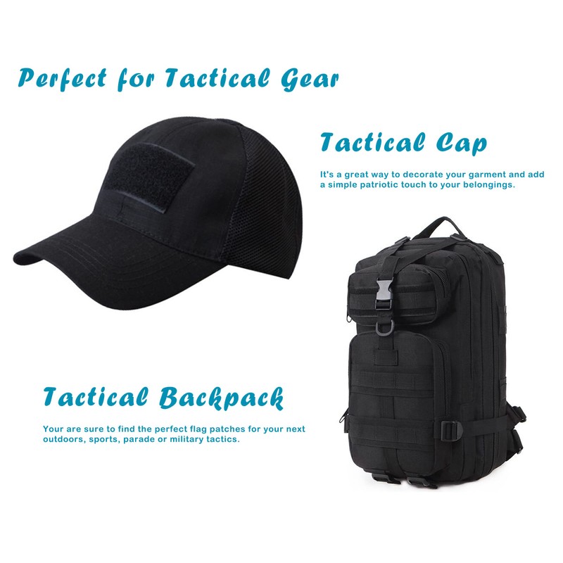 - APPLICATIONS: Perfect decorations for military uniform, tactical bag, jacket, team, backpacks, hats, etc. It's a great way to decorate your garment and add a simple patriotic touch to your belongings.