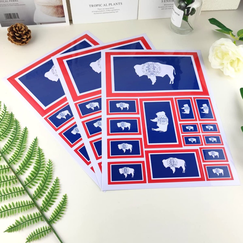 - ENOUGH TO USE and VARIOUS SIZE: Set of 3 Wyoming decals per pack. 15 pcs each decals, 45 pcs in total, enough for you to use. 11.7x 8.3 inch/29.7 x 21 cm in flag size. A variety of sizes for a wider application.