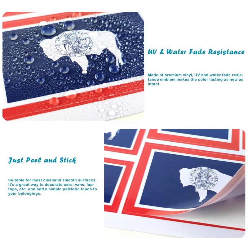 - APPLICATIONS: Wyoming stickers are just perfect for various occasions, or any day you want to show your pride. Suitable for most clean and smooth surfaces. It's a great way to decorate cars, vans, laptops, etc. and add a simple patriotic touch to your belongings.