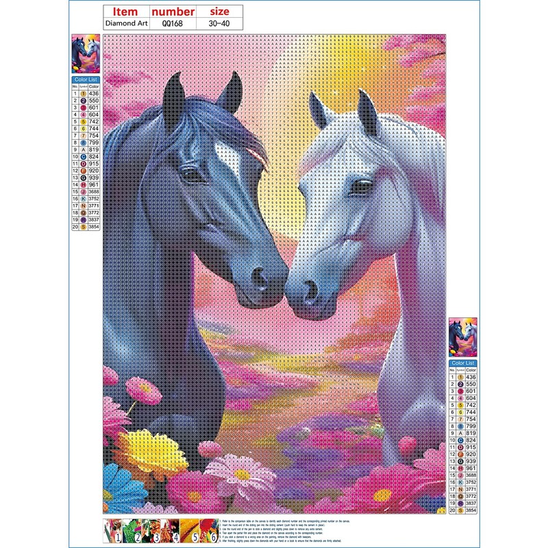 QQYRHN 5D Two Horses Diamond Painting Kit for Adults Beginners Dreamland Diamond Art Kits Complete DIY Lovers Diamond Embroidery Set Perfect for Relaxation and Decoration 30 x 40 cm