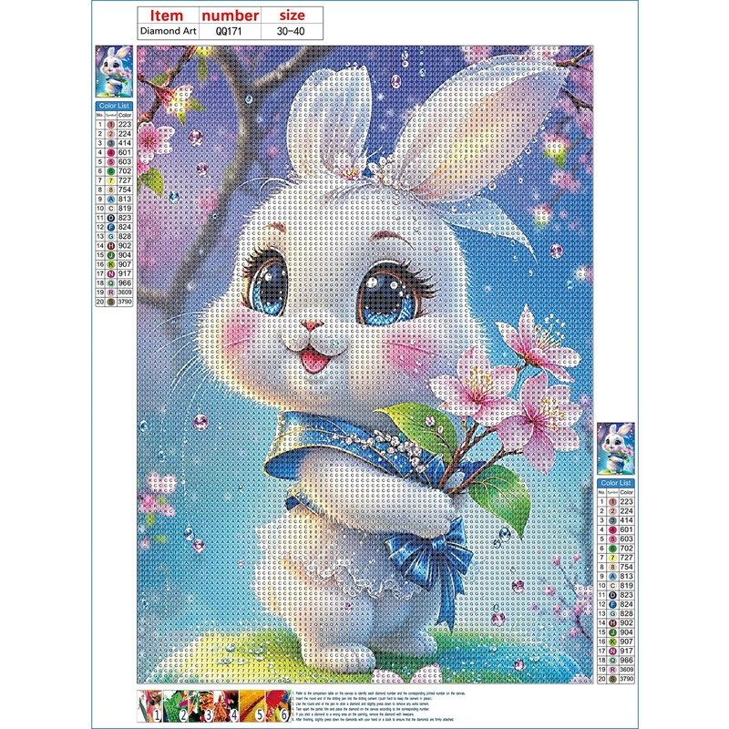 QQYRHN 5D White Rabbit Diamond Painting Kit for Adults Beginners Cute Rabbit Diamond Art Kits Complete DIY Flowers Diamond Embroidery Set Perfect for Relaxation and Decoration 30 x 40 cm