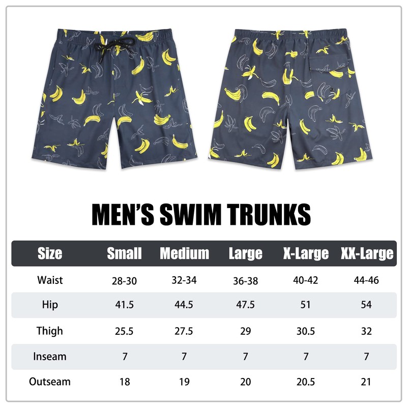 QRANSS Black Banana 7 inch Compression Lined Swimming Trunks Men's Size 36-38 chubbies Bathing Suit Quick Dry Stretch Swimming Trunks Beach Shorts for Men