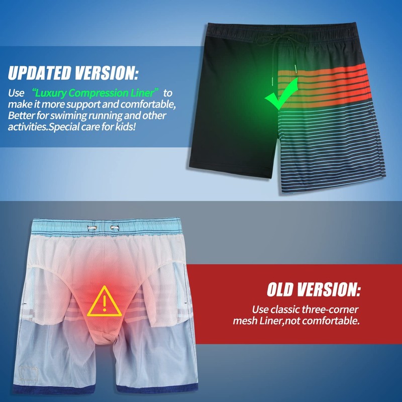 - Upgraded Swimming Trunks: Designed with lightweight outer layer and breathable inside Liner,Compression shorts support the private protection, reduce the risk of bruising and protect your legs during activities. Breathable ,soft material and absorbing sweat function will greatly enhance wearing experience.