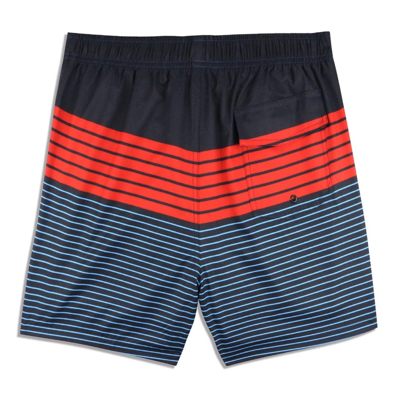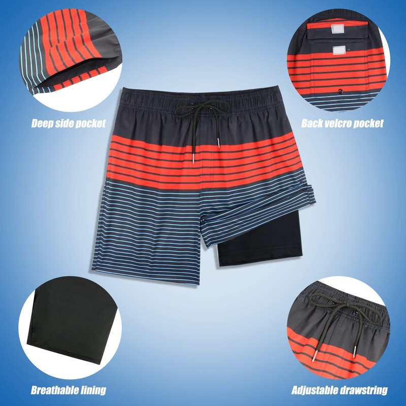 QRANSS Men's Swimming Trunks Compression Lining Board Shorts Beach Swimming Pants Quick Dry Men Surfing Boardshorts,5.5" Inseam (BlackRed Striped,Large)