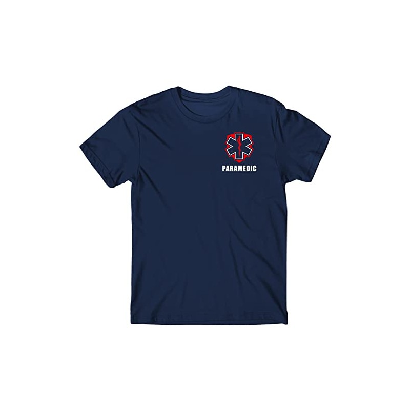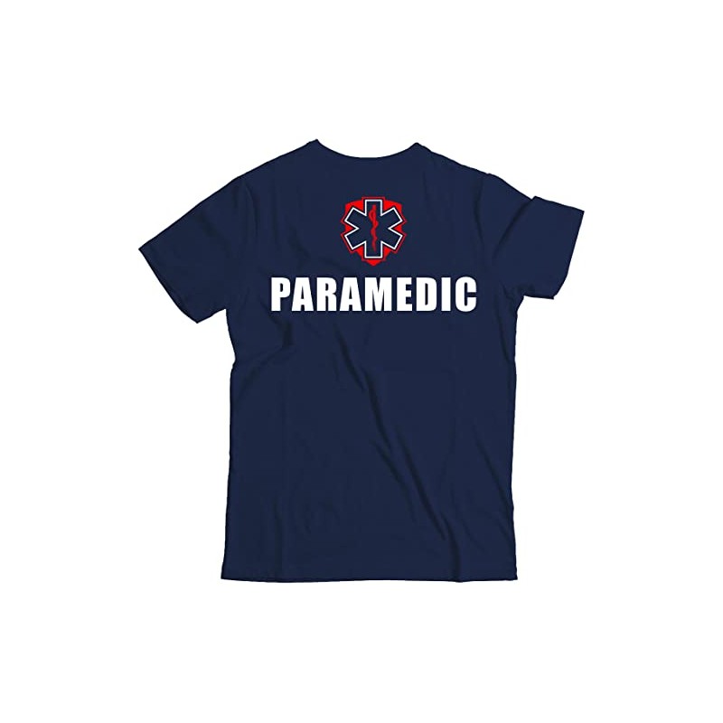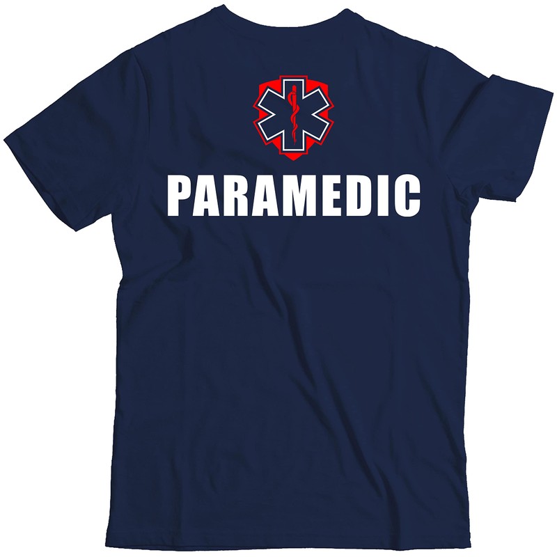Qraphic Tee Paramedic t-Shirt, DryBlend with Front and Back Screen Print. (Small, Navy)