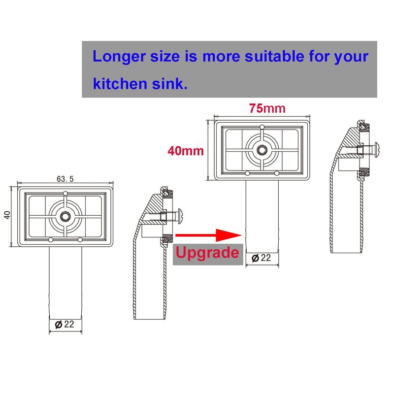 - Rectangle Interface: 75x40mm; Tube Length 230-600mm, Diameter 26mm (Inner Dia: 21mm) .