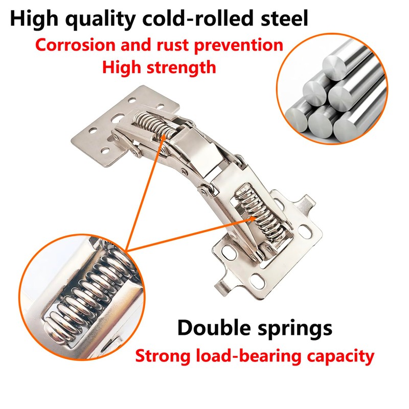 - Sturdy Construction: The hinge's external double springs help to improve the hinge's load-bearing capacity and longevity, keeping the cabinet door stable and non-swinging.
