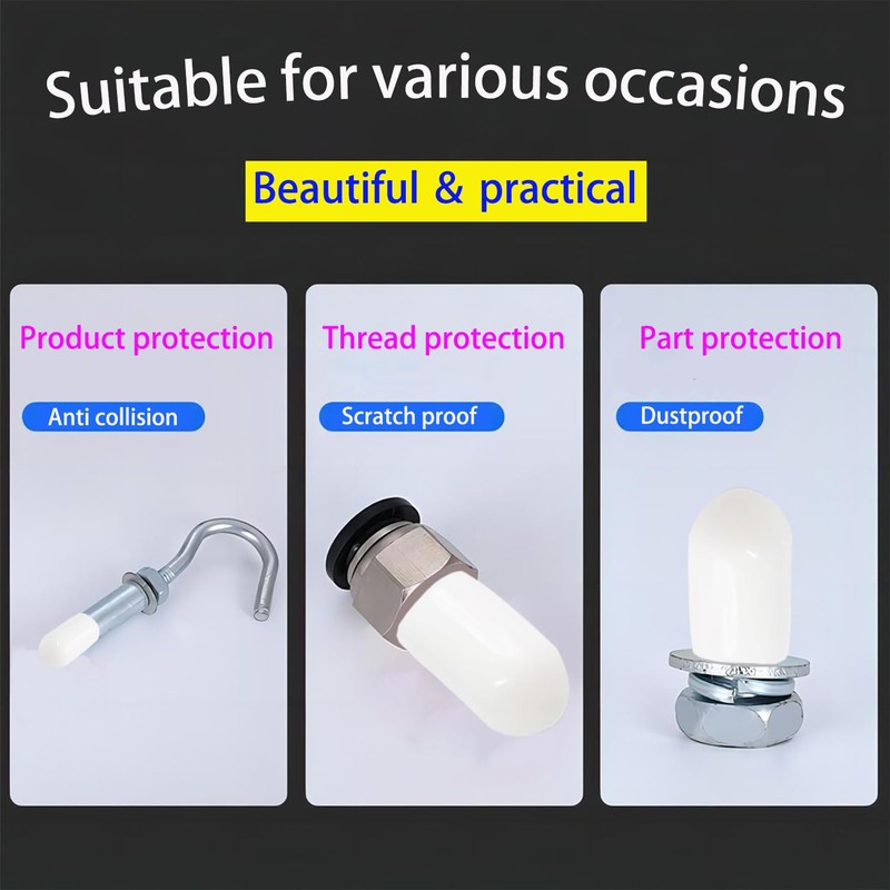 Wide application: These protective caps are commonly used on the ends of objects and can be used for dust protection, protection, decoration, insulation and more. They are suitable for all types of hardware threads, screws, round tubes, wires, hooks and more.