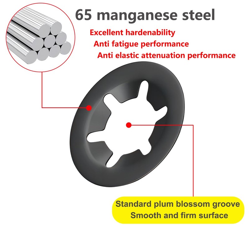 Qrity Starlock washers are non-deformable, abrasion resistant and corrosion resistant, which facilitates quick repairs, and are commonly used in machinery and industrial equipment.