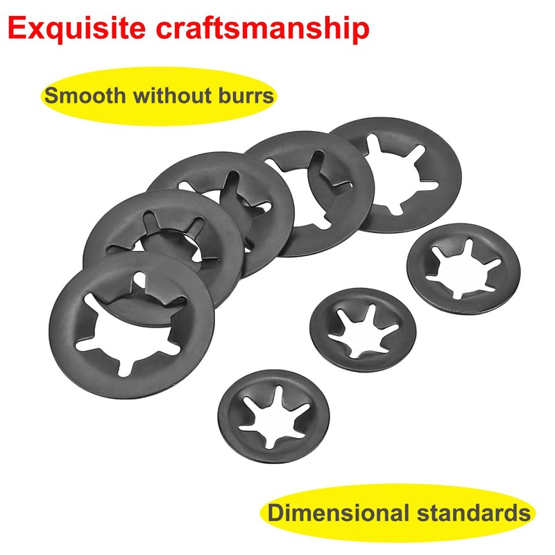 • STRONG STRENGTH These Starlock washers create a spring force between the mounting head and the base, effectively securing the structure of the joint, preventing loosening and giving greater torsion and friction strength.