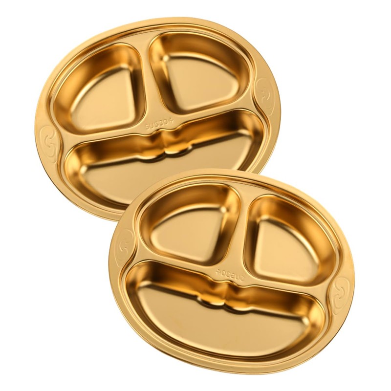 QRU Stainless Steel Divided Plates Set of 2, 3 Compartment Plate for Kids, Ad...