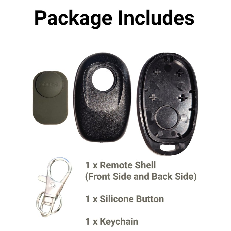 - Package Includes - 1 × remote shell (with silicone button), 1 × keychain. Please note that this is NOT A COMPLETE REMOTE CONTROL. Circuit board, chip and battery are not included.