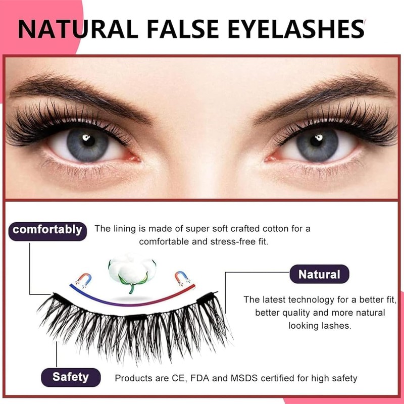 - Natural LookThe magnetic false eyelashes have nice curling radian and blend seamlessly with real lashes, making your eyes bigger and more glamorous. They are as natural as your real eyelashes without the feeling of wearing false lashes. making you charming and pretty