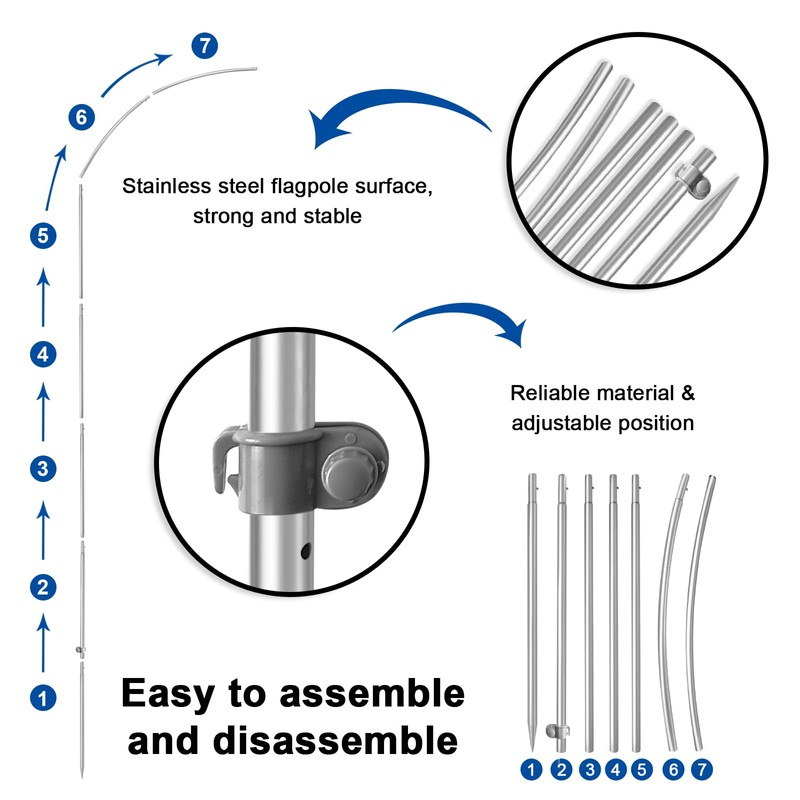 - High Stability: Made of stainless steel flag pole, wind resistant, high performance, high load-bearing pull, guaranteeing pole stability