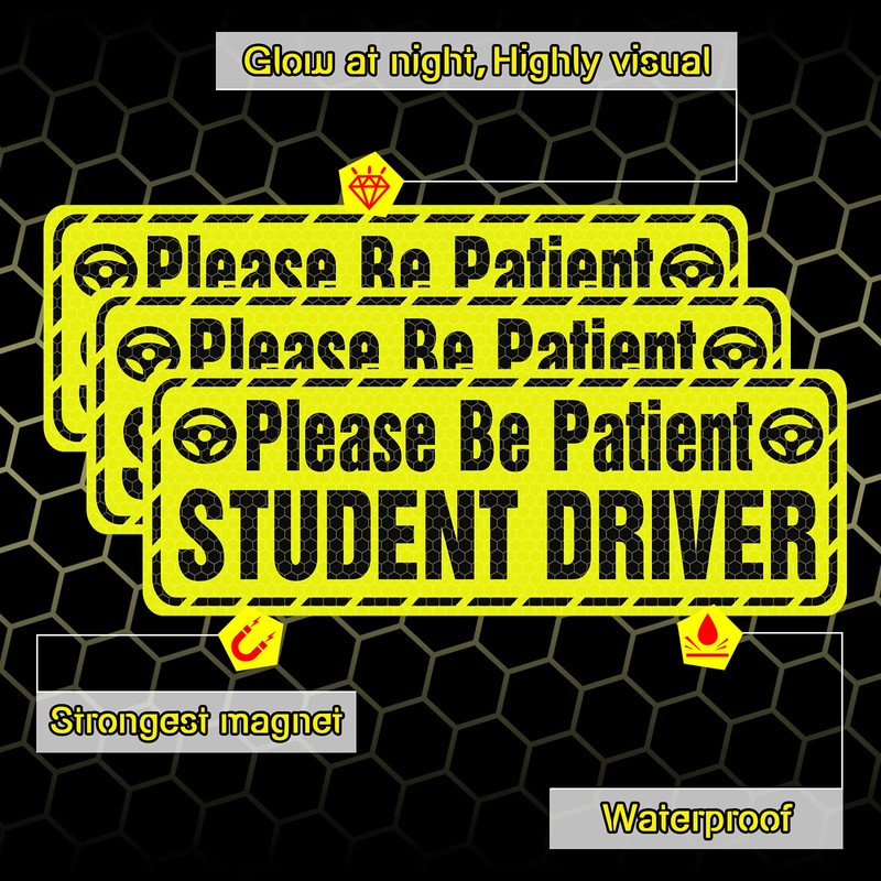 QSUM Student Driver Magnet Safety Sign for Car, 3Pcs 10x3.5inch Highly Reflective Magnet Sticker for Novice or Beginner (Yellow)