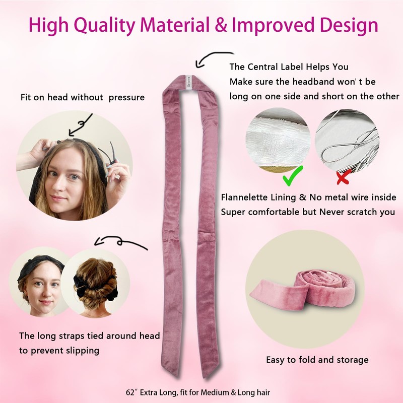 - FOR ALL HAIR TYPES: Measuring 62" long. This heatless headband hair curler can be used on all hair types, from straight to curly and everything in between, making them the heatless headband hair curlers for long hair or medium hair length. It makes you beauty shiny and healthy curls