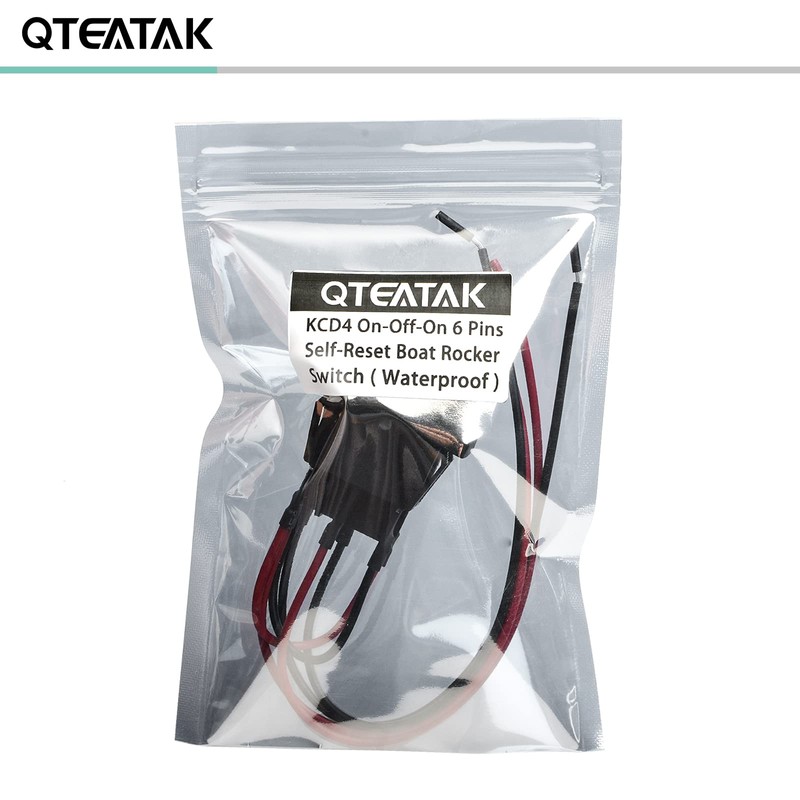 QTEATAK DC 12V 10A 6 Pin 3 Position (ON)-Off-(ON) AC 110V-220V Waterproof Momentary Polarity Reverse Switch Motor Control Black Boat Rocker Toggle Switch with Wire KCD4-223-QT