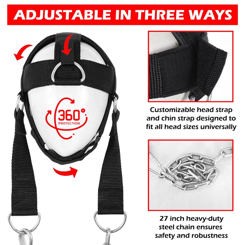 - Adjustable Straps: Featuring three adjustable straps at the top, bottom, and back, the neck training harness is designed for an optimal fit during long workouts. The strategic placement of these straps ensures the harness stays securely in place throughout training sessions.