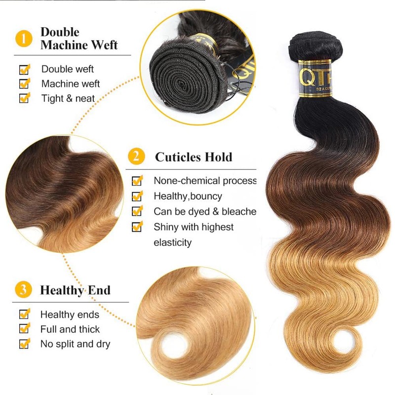 - đź’—Package & Service:The Package Includes 1x1B/4/27 Ombre Body Wave Human Hair Weave 3 Bundles and Multiple Gifts. Professional Hair Factory Supplier and Trustworthy Brand, Verified Quality and Quick Responsible Service.