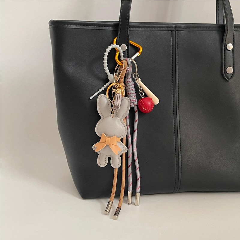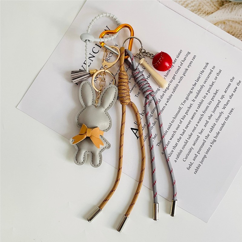 QTKJ Keychain for Women, Gray Bunny Bag Charm, Hand-Woven Nylon Rope Key Chain, Aesthetic Keychain, Bag Accessories Charms for Handbag, Backpack