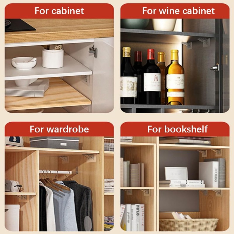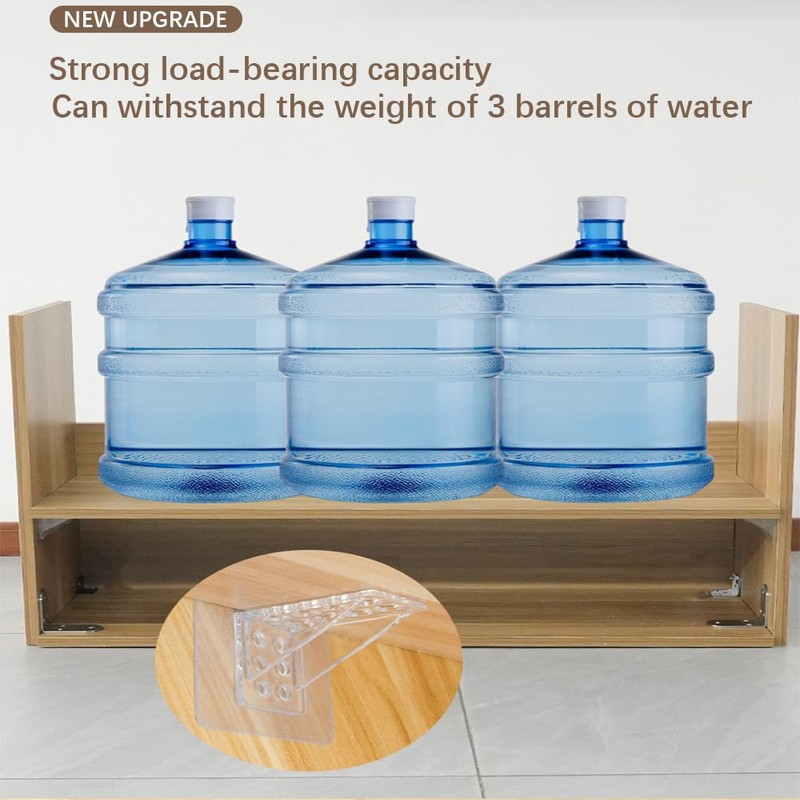 QTOETUII Transparent Nail-Free Shelf Brackets,Plastic Punch-Free Cabinet Shelf Brackets,Triangle Design,Strong Stickiness & Load-Bearing Capacity, for Kitchen Cabinet Furniture Book Shelve (4Pcs)