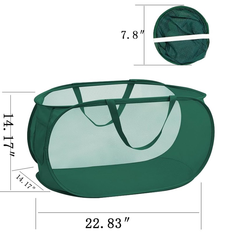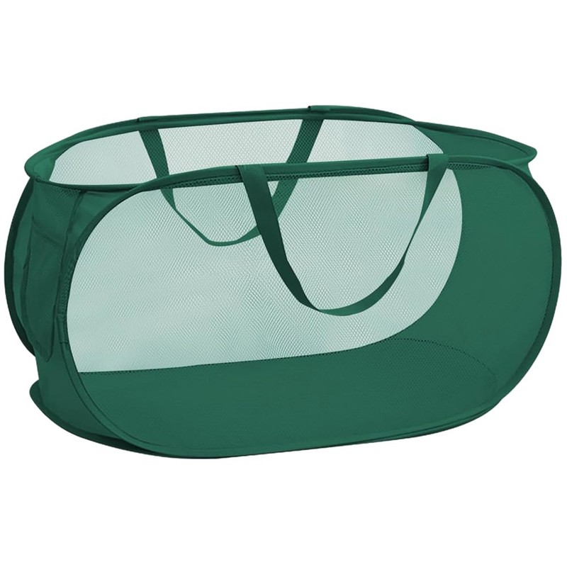 Qtopun Mesh Popup Laundry Hamper, Horizontal Foldable Portable Dirty Clothes Basket for Bedroom, Kids Room, College Dormitory and Travel - Green