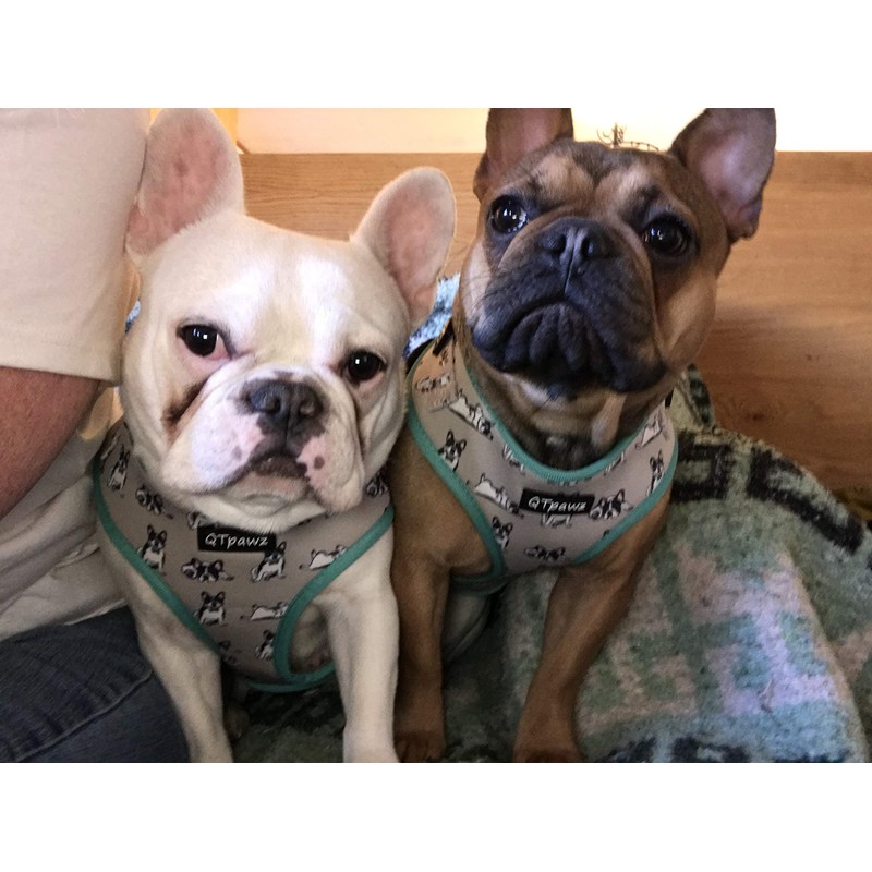 QTpawz French Bull Dog Vest Harness with Matching Leash, 4 Adjusting Buckles to Get The Perfect Frenchie Fit (Large)