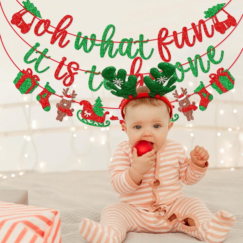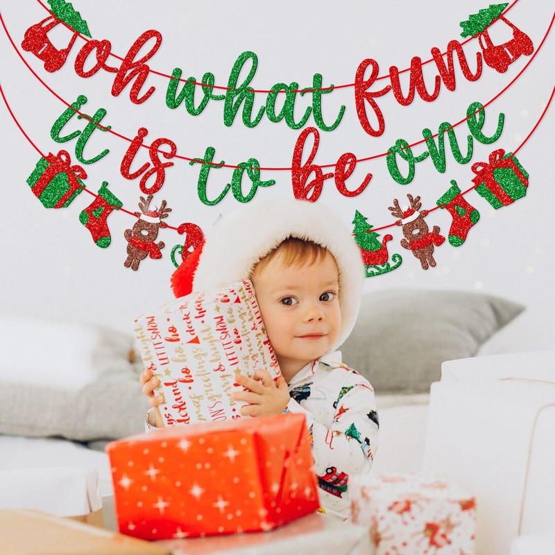 - What will you get: 1pc "Oh What Fun" banner is flanked by adorable Christmas car designs, 1pc "It Is to be One" banner, and 1pc banner comprised of nine assorted Christmas patterns.