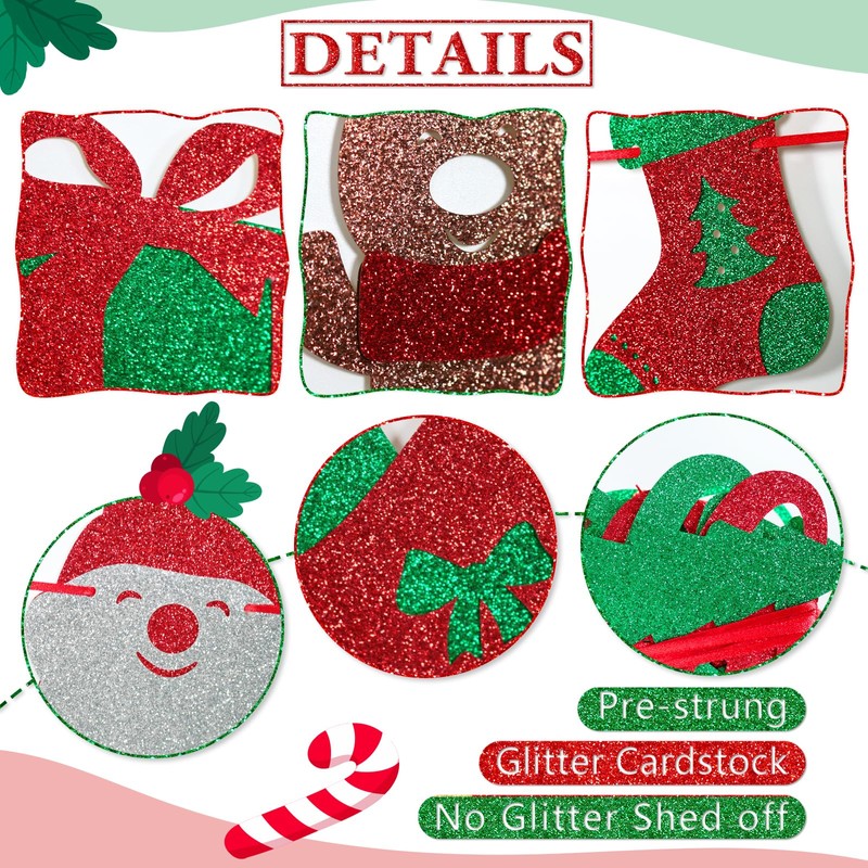- What is it made: The Christmas birthday banners are crafted from top-notch glitter cardstock, casting a festive red and green shimmer under illumination.