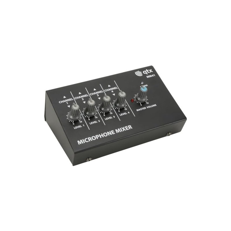 qtx MM41 Mini Microphone Mixers | 4 Channel,Black