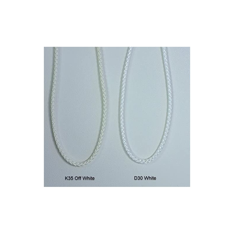 - K35 (3.4mm) is a little thicker than D30. Therefore it grabs the gears of the clutch tighter and has higher tensile strength. Use on larger shades and clutches. Color is OFF WHITE