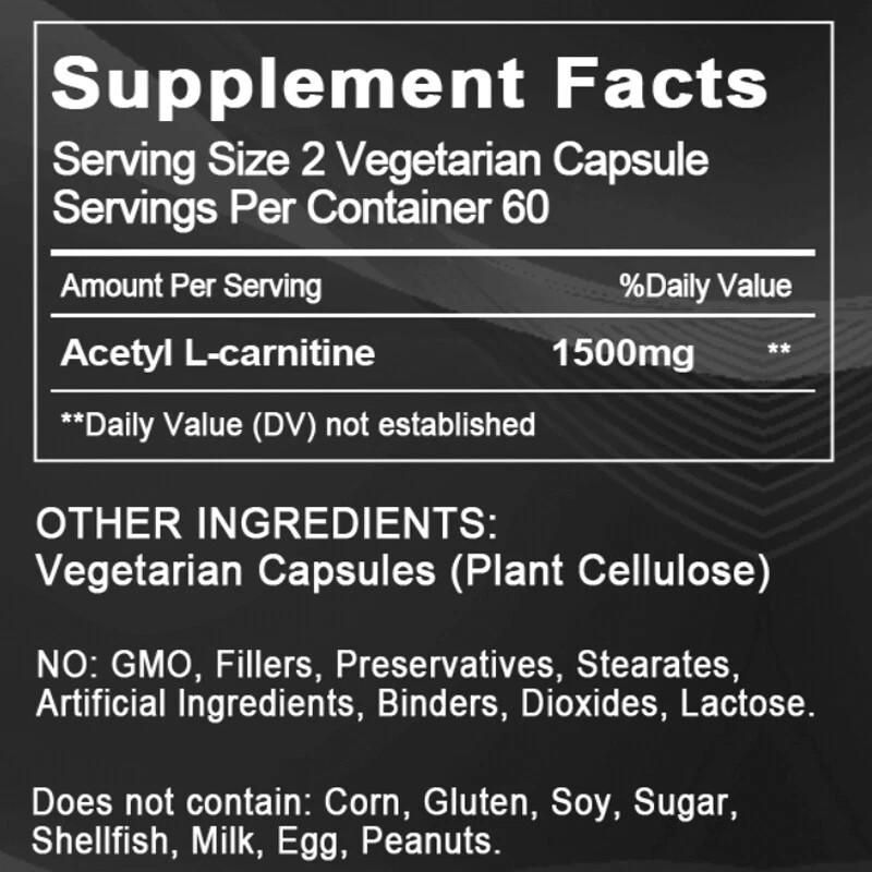 Qty360 Acetyle L-Carnitine Caps 1500mg High Potency Energy Production Supplement