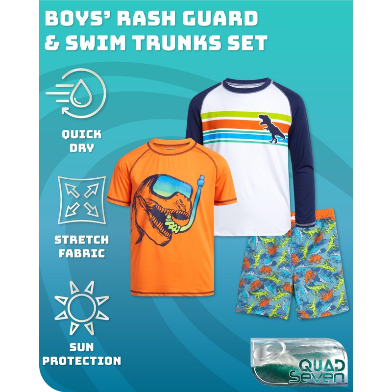 Quad Seven Boys' Rash Guard Set - 3 Piece Quick Dry Stretch Bathing Suit Trun...