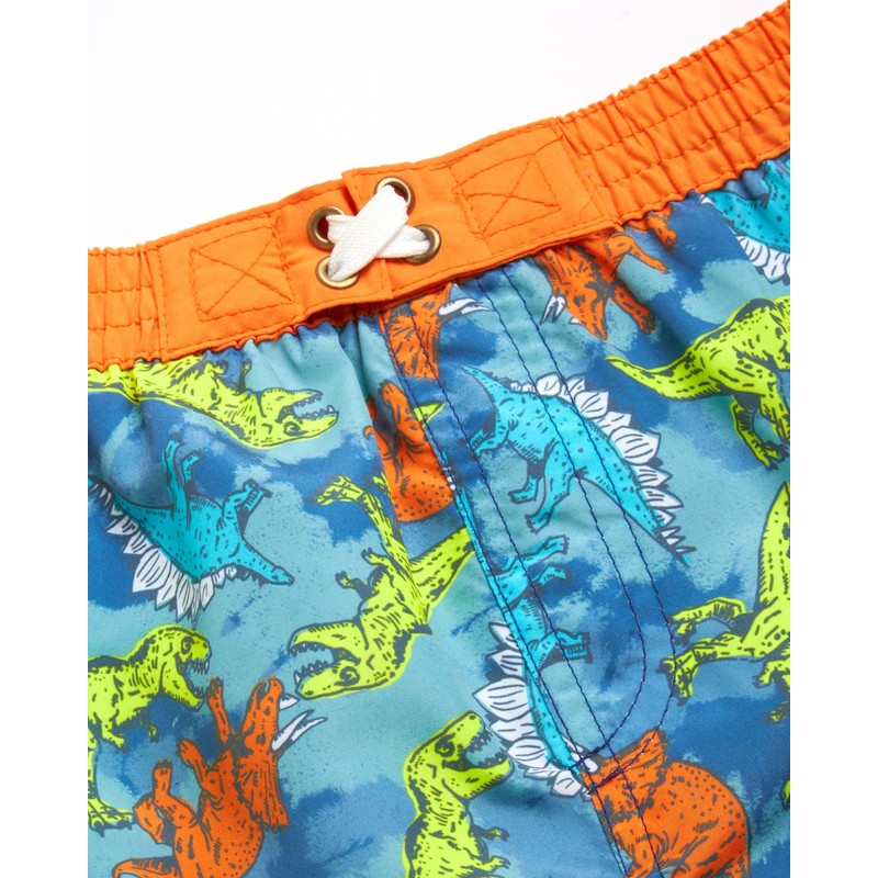 Quad Seven Boys' Rash Guard Set - 3 Piece Quick Dry Stretch Bathing Suit Trunks and Shirt - Swim Set for Boys (Sizes: 5-12), Size 10, White Orange Dino