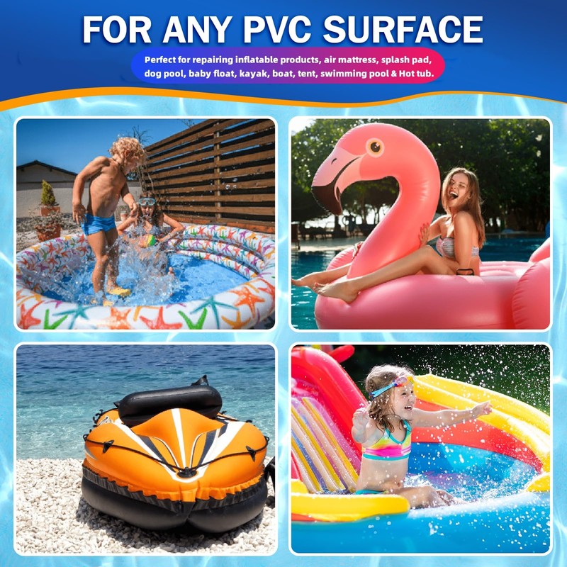 - ✅【WATERPROOF AND LONG-LASTING】-Vinyl pool liner repair kit is completely waterproof, making it ideal for use both underwater and outdoors. After curing for 48 hours, the adhesive becomes flexible and strong, ensuring a secure bond that holds up even under water or heavy use. Liquid PVC adhesive sealant is colorless and odorless. When used with transparent patches, it can be seamlessly integrated with various colors without destroying the original color. Keeping them looking good while shielding UV resistant rays to prevent yellowing.
