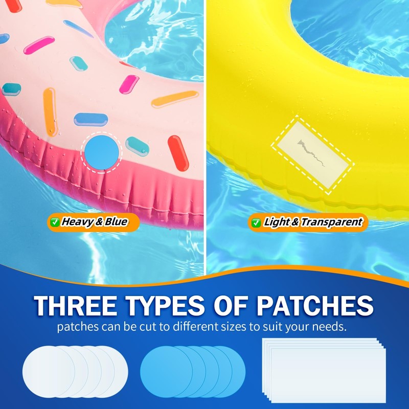 - ✅【HEAVY DUTY PATCH】There are a total of 15 pcs 3 types vinyl patch, made of tough, scratch resistant, and deformation resistant fabric, which can be used with vinyl adhesive and has strong adhesion and waterproofness. In addition, this patch is compatible with most swimming pool liners and is an ideal choice for successful repairs. 80ml Patch Kit is compact and lightweight, making it easy to store and carry with you on trips or outdoor adventures. Be prepared for any unexpected damage to your inflatables wherever you go!