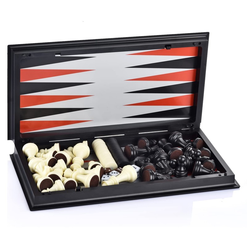 - 【PORTABLE 3-IN-1 SET】 Play chess, checkers, and backgammon wherever you go with this handy multi-game set; Open size of board is 12.51*12.51*0.79 Inches, while folded size is 12.51*6.25*1.58 Inches. This perfectly sized chess board is small enough to travel with, but also large enough to play comfortably.