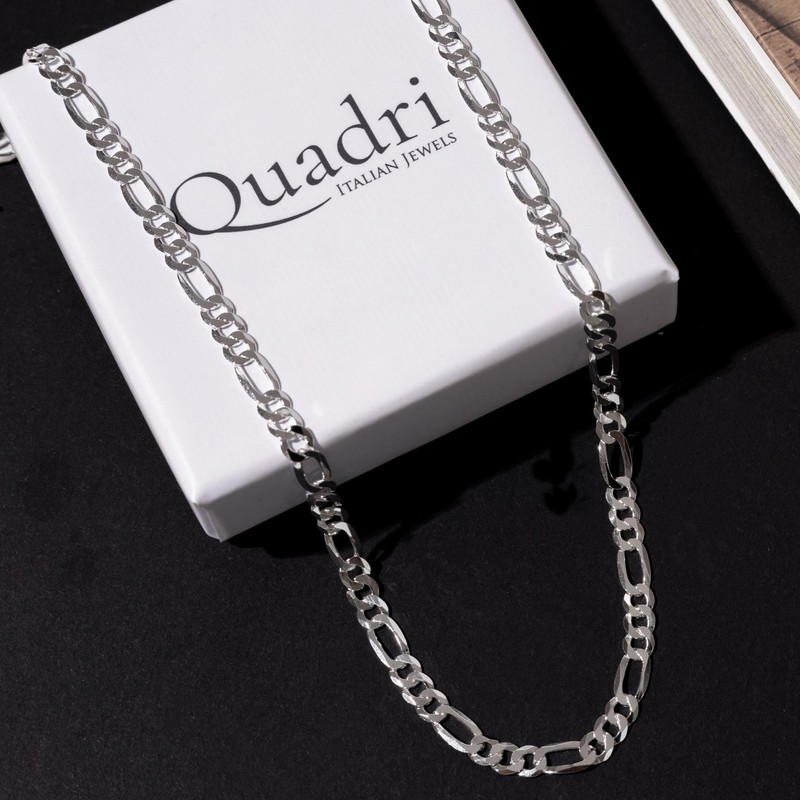 Quadri -925 Sterling Silver 5MM Figaro Link Chain Necklace 16-30 Inch Made in Italy