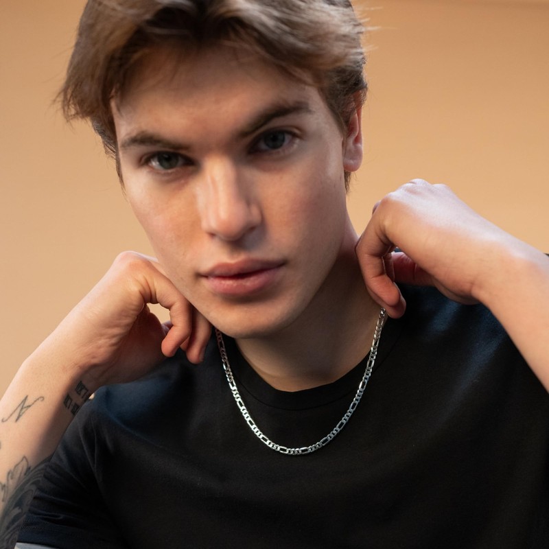 - STYLISH AND VERSATILE: The classic Figaro chains for men design adds a touch of sophistication to any look. This men's necklace enhances both formal attire and casual outfits, making it an ideal silver necklace men can count on for any occasion.