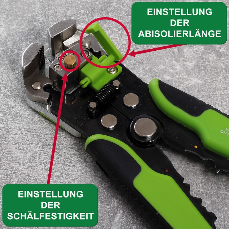 - Automatic removal tool for quick and safe stripping of wires such as PVC cores and fine-stranded conductors. The adjustment to the conductor cross section is automatic